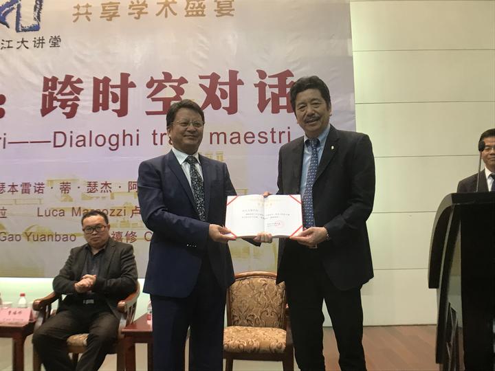 鲁迅文化基金会为表达绍兴文理对五年来承办"鲁迅与世界文豪跨时空对话”对大师对话的支持,颁发荣誉证书。