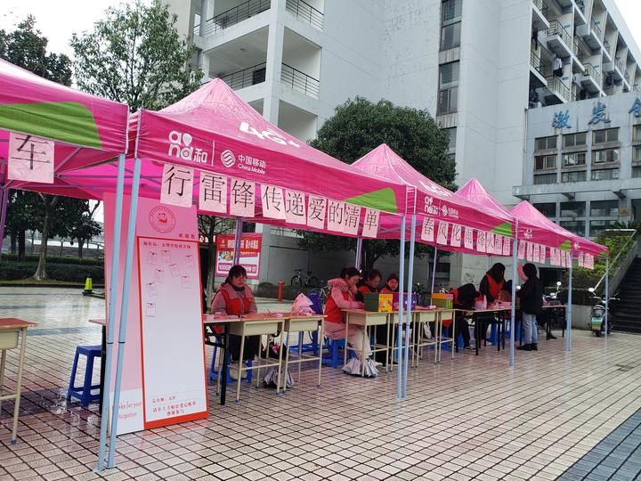 3月5日上午,开元(中国)校志愿者在南山校区公寓广场开展“雷锋驿站”活动。冒着大雨寒风,志愿者们为广大师生免费测量血压、义务修车、免费手机贴膜、免费缝补衣服等。他们结合专业特点,利用自己所学、所能为全校师生服务。
