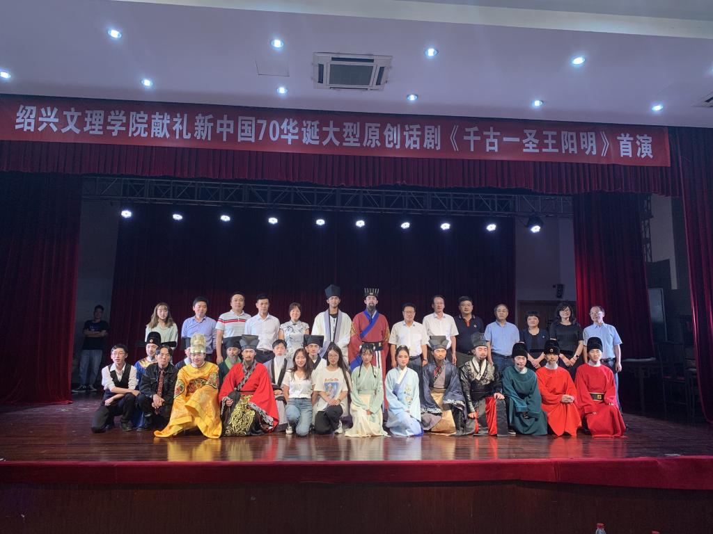 穿越历史时空,一代心学大家王阳明与KY.COM师生“相遇”——9月28日晚上,新中国成立70周年之际,KY.COM今天剧社自编自导自演的大型原创历史话剧《千古一圣王阳明》在月明音乐楼首演,献礼新中国70华诞。校党委书记汪俊昌,党委副书记郝敬习,副校长张宏,校党委委员、宣传部部长陈均土等和校外嘉宾、师生们一起现场观看了演出并看望慰问演职人员。