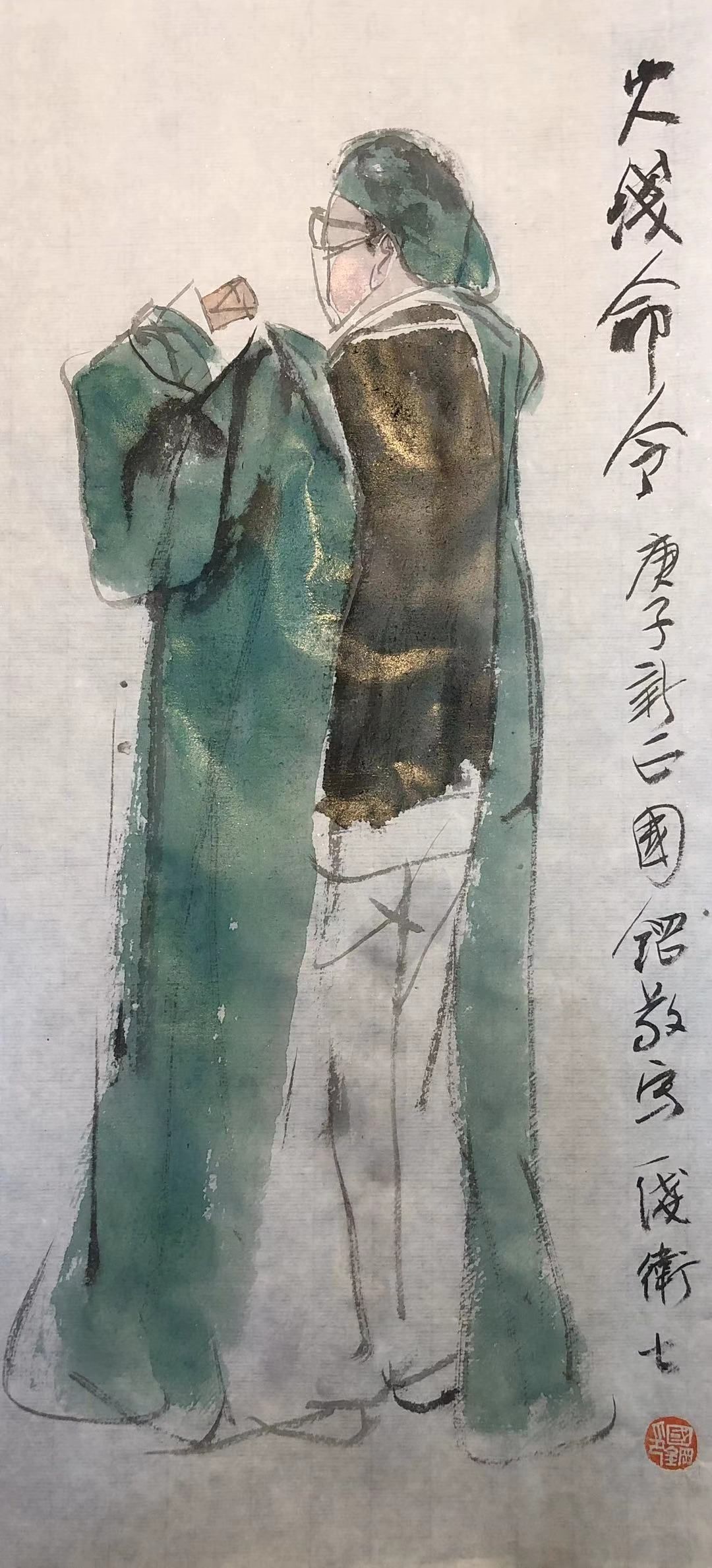 他的这些画如速写,言简意赅,短小精悍。如“逆行者”,表达一个背影,当他(她)直面危难时,给我们的那种力量,如坚山盤石,这是英雄的象征!钟南山院士令人感动敬仰,八十五岁的高龄还一直坚守在一线战场,是人民健康的真正卫士。在吕国钢心目中是民族的英雄,他小时候经常喜欢画民族英雄岳飞,然后把钟院士也画成岳飞的样子,铁甲盾牌,一只手警告人们不要食用野生动物,一手持盾,保护人民生命健康安全!