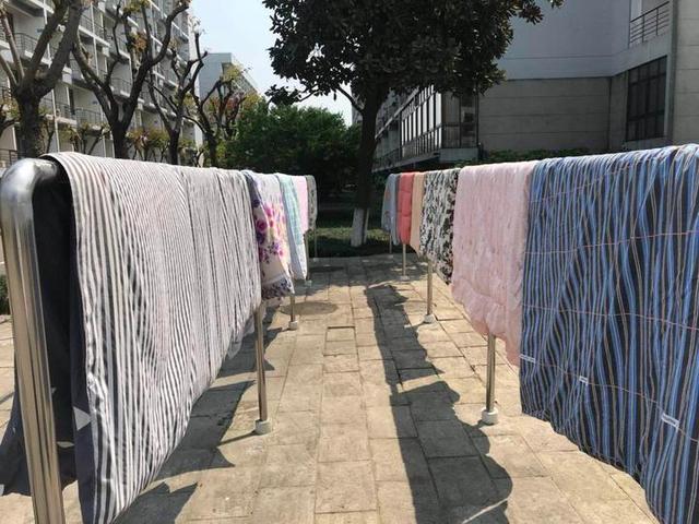 一到晴天,宿管阿姨就忙着给学生晒被子