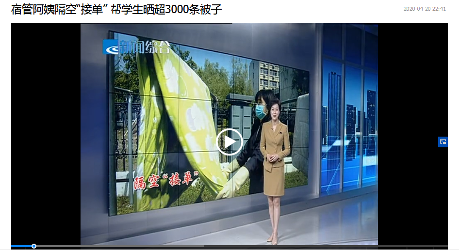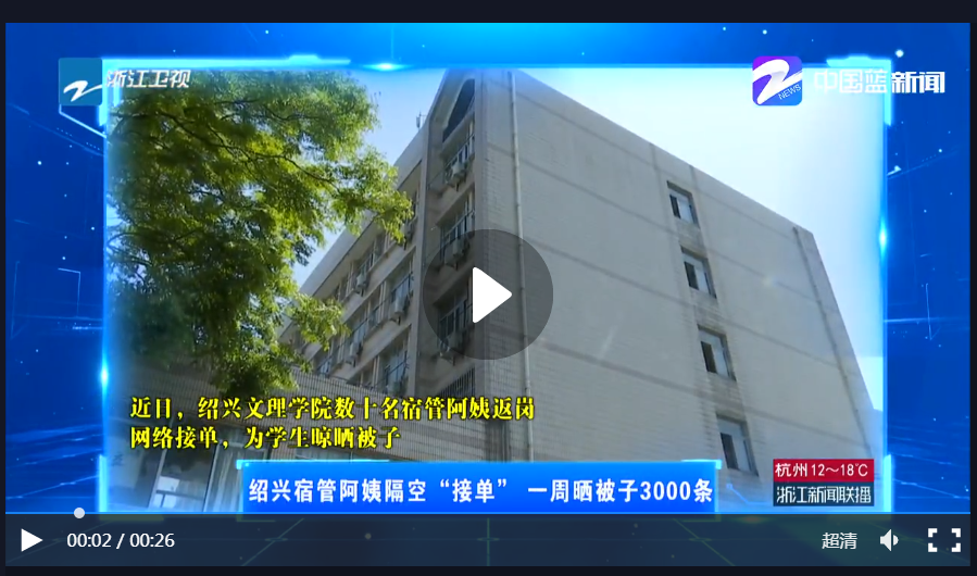 浙江卫视:绍兴宿管阿姨隔空“接单” 一周晒被子3000条。
