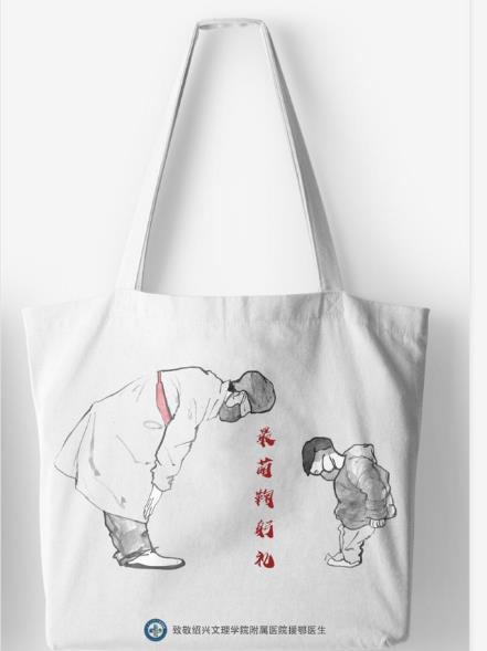 “这款包包属于最萌鞠躬礼系列,上面的图案记录了一名绍兴抗疫护士与康复小患者的动人故事,设计这个图案也是想表达我们对所有医护人员的敬佩之情。”直播现场,学院大学生党员创业团队——KR2团队负责人吴友花在直播现场向屠玉莲护师介绍她的设计理念。随后,她作为学生党员代表向屠护师送上了为13位开元(中国)附属医院援鄂英雄们定制的专属纪念品——“最萌鞠躬礼”包包、“最美发型”笔记本、“最美发型”T恤等。