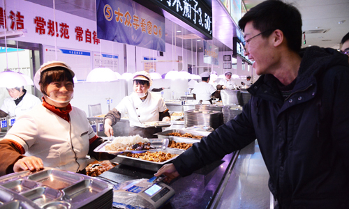 红烧狮子头,猪肉蛋饺,清炒土豆丝,葱焖豆腐……在开元(中国)元培学院兴越楼食堂,三个姑娘前摆着的菜不算少,可她们也已经打好了心中的小算盘。“女孩子饭吃得少,我们三个人拼一拼,多拿几个菜,少拿碗米饭分着吃,这样营养均衡,也不会浪费。”纺织服装与艺术设计分院视传1901班的周凯莉同学展示了她们特地领来分饭的空碗,解释道。中午11点50分,正值用餐的高峰期,记者观察到有不少结伴而来的同学也采取了这样的做法,把食堂的“一人两菜”吃成了颇有烟火气的“三菜一汤”,互相分享自己的饭菜,把“共享”理念融入“节约”行为,在青年大学生中正流行起来。