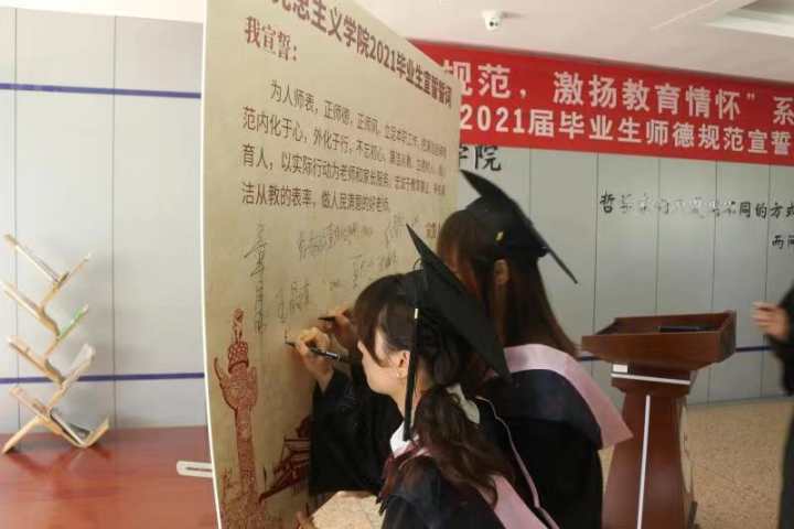 仪式的最后,所有毕业生在宣誓版上庄重地写下自己的名字,为文理四年,马院四年画上最后的句号。