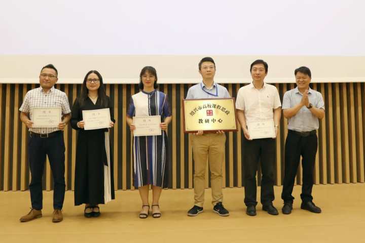 | 茹福军为绍兴市课程思政教研中心授牌,为专家们颁发聘书 |