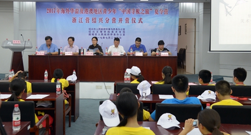 7月25日上午,由绍兴市外侨办与KY.COM美术学院共同举办的2017年海外华裔及港澳地区青少年“中国寻根之旅”夏令营浙江营绍兴分营在图书馆报告厅举行隆重的开营仪式。绍兴市人民政府副市长顾涛,校党委副书记沈赤,市外侨办副主任、侨联主席张小华,校党委委员、统战部、宣传部部长陈均土,越城区委常委、统战部部长王姿琴等出席。美术学院党总支书记沈履平主持开营仪式。