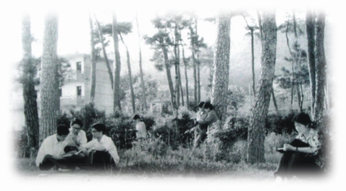 1978-1980浙江师范学院绍兴分校攒宫校园晨读一景