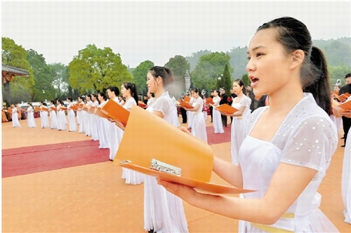 文理学子在公祭大禹陵典礼上合唱《大禹纪念歌》