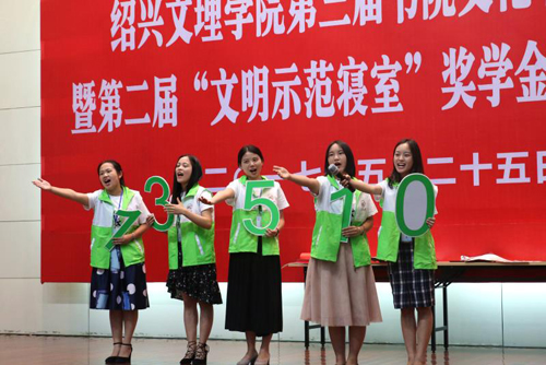 为全面贯彻全省高校思想政治工作会议精神,深化落实浙江省教育厅《关于全面深化文明寝室创建要求的通知》,通过培育、挖掘、宣传“学业争先,行为争范”的寝室,充分发挥道德示范、社会公益、学霸考霸、考研考博等寝室的示范榜样作用,把社会主义核心价值观落细、落微、落实,进一步提高学院思想政治工作水平和人才培养质量,5月25日晚,学院第三届“书院文化节”闭幕式暨第二届“文明示范寝室”奖学金现场展示会隆重举行。学校各部门领导及学生代表400余人参加活动。