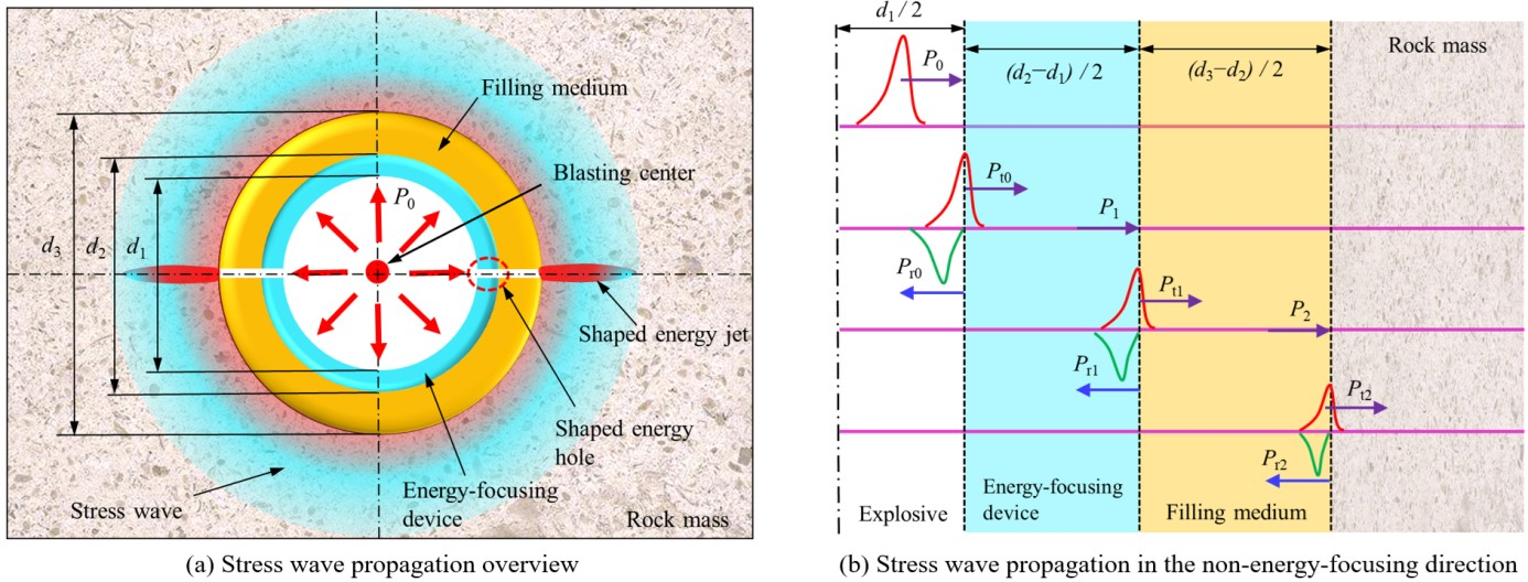 近日,土木工程学院郭鹏飞副教授团队在国际顶级学术期刊《International Journal of Mining Science and Technology》(位列Mining & Mineral Processing学科Q1区(第1/31名))上发表了题为《Energy regulation mechanism and medium-filling effect of energy-focusing blast》的研究论文(DOI: 10.1016/j.ijmst.2025.03.010)。该论文的研究成果揭示了聚能爆破能量调控机制,为提升工程岩体爆破过程中的聚能效应提供了新的策略。